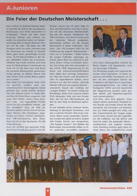 Fotos für die Vereinsnachrichten des VfB Stuttgart