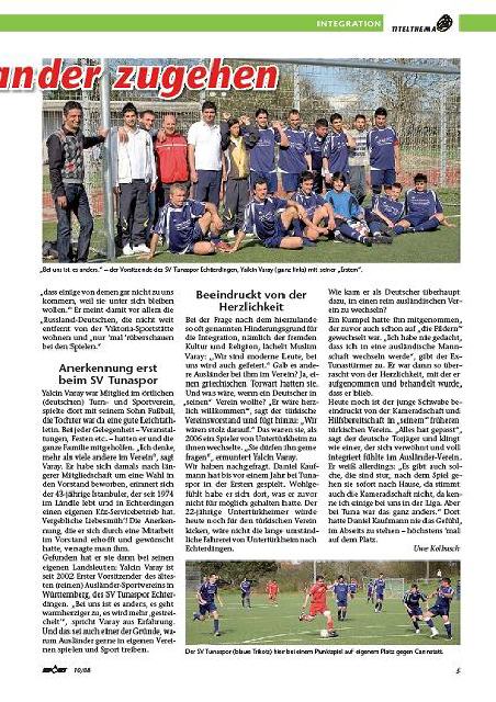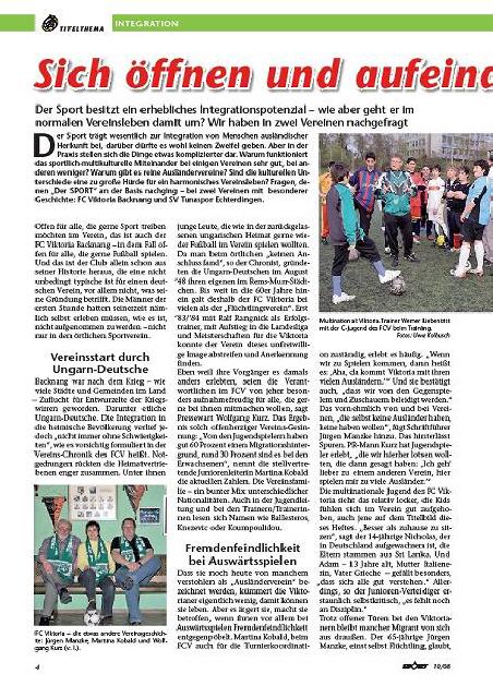 Artikel und Fotos (inkl. Titelfoto) zum Thema INTEGRATION DURCH SPORT in Ausgabe 10/2008