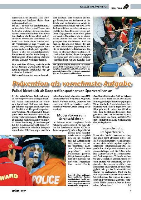 Artikel und Fotos zum Titel-Thema GEWALTPRÄVENTION in Ausgabe 09/2007