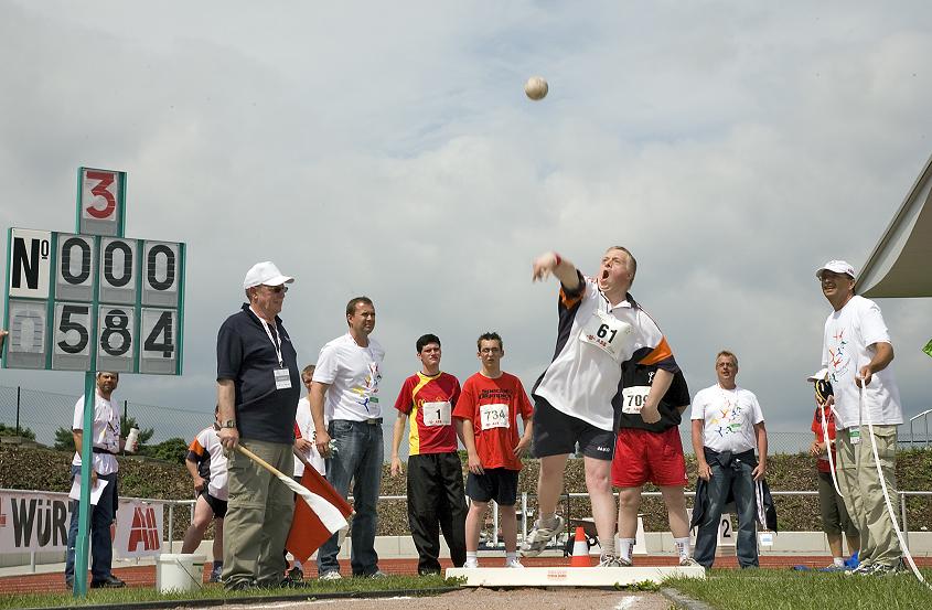 3.600 Athletinnen und Athleten aus allen Bundesländern sowie fünf ausländische Delegationen gingen eine Woche lang in der Karlsruher Europahalle und anderen Sportstätten der badischen Metropole bei den Special Olympics National Games 2008 an den Start. Baden-Württemberg stellte mit 773 Sportlern das größte Kontingent. Mit dabei waren 700 Familienangehörige und 1.300 Coaches bei diesem äußerst beeindruckenden Sport-Großereignis, bei dem in der Fächerstadt in 17 olympischen Disziplinen um Gold, Silber und Bronze fair und freudig gestritten wurde. Offenkundig aber wohl mehr als bei den „echten“ Weltspielen oder sonst einem der Hyper-Sportspektakel galt bei diesen Wettbewerben der geistig Behinderten der Ur-Gedanke von Olympia: „Dabei sein ist alles!“. Und es gab keine Doping-Skandale, vielmehr waren alle „gedopt“ mit lebensfroher Begeisterung für den Sport.