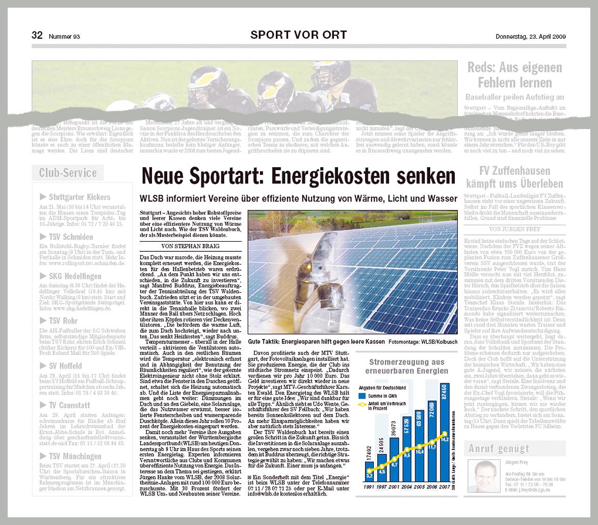 Die STUTTGARTER NACHRICHTEN hatten das WLSB-Thema aufgegriffen und auch das Titelfoto übernommen - hier als PDF [647 KB] . |
