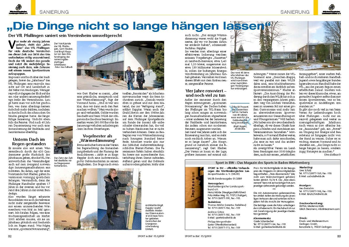 zum Thema SPORTSTÄTTENBAU u. ENERGIE SPAREN
